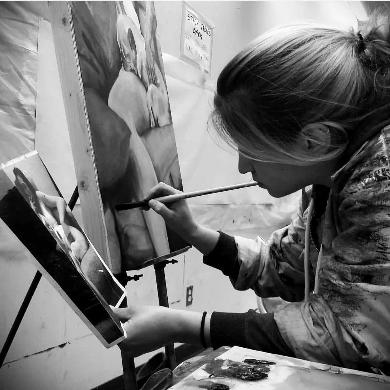My work invites viewers to connect their lived experience to the narrative’s of my figures and still life’s. In my portraiture, my figures depict “emotional” women encased in the palette of their physical environment, forcing the viewer to speculate how these characters are talked to and how they talk to themselves. In my figure painting I source my photos from individuals that I admire as well as using myself frequently as a model for these characters. I find power in retelling my vulnerable experiences and reclaiming space with large scale figures and their narratives.